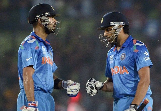 रोहित शर्मा और विराट कोहली की जोड़ी एक बार फिर से इस लिस्ट में जगह बनाने में कामयाब रही। दोनों बल्लेबाजों ने 2014 के टी20 वर्ल्ड कप में मिलकर काफी उम्दा खेल दिखाया था। 2014 के ही विश्व कप में रोहित और कोहली की जोड़ी ने वेस्टइंडीज के खिलाफ दूसरे विकेट के लिए 106 रन जोड़े थे। यह साझेदारी भी लक्ष्य का पीछा करते हुए ही आई थी। वेस्टइंडीज के 130 रन के टारगेट का पीछा करते हुए शिखर खाता खोले बिना ही आउट हो गए। यहां से रोहित शर्मा के नाबाद 62 रन और विराट कोहली के 54 रन की मदद से भारत ने विंडीज के लक्ष्य को 19.4 ओवर में हासिल कर सात विकेट से जीत हासिल की।
