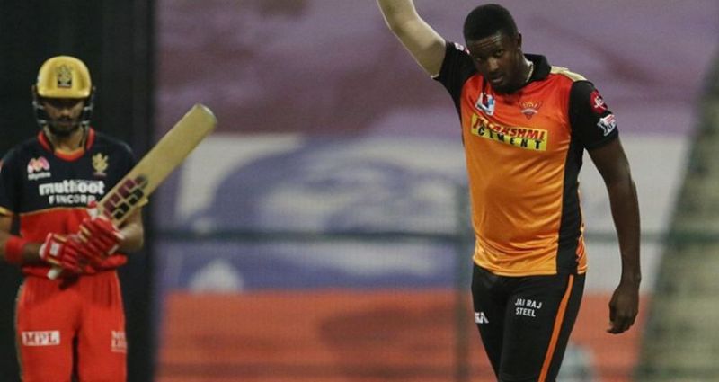 सनराइजर्स हैदराबाद के लिए जेसन होल्डर हर मैच में बेहतर खेल का प्रदर्शन कर रहे हैं। जेसन होल्डर ने आरसीबी के तीन मुख्य बल्लेबाजों को पवेलियन लौटा दिया। विराट कोहली, देवदत्त पडीक्कल और शिवम दुबे को होल्डर ने अपना शिकार बनाया। होल्डर ने अपने चार ओवरों की गेंदबाजी में 25 रन देकर 3 विकेट चटकाए। इस प्रदर्शन के कारण आरसीबी का स्कोर 131 रन तक ही सीमित हो गया।