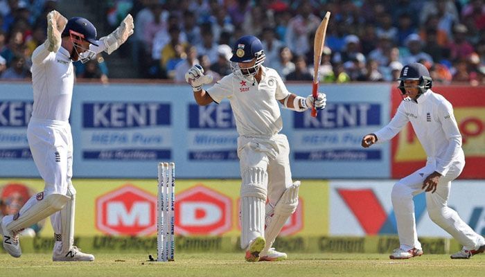 इस सूची में दूसरे नंबर नाम आता है भारतीय कप्तान विराट कोहली का। विराट कोहली 'टेस्ट में हिट विकेट आउट होने वाले 67 साल में पहले भारतीय कप्तान बने। 2016 में इंग्लैंड के खिलाफ राजकोट में पहले टेस्ट के पहले दिन के अंत में, विराट कोहली 40 रन के निजी स्कोर पर हिट-विकेट आउट हुए। भारतीय पहली पारी के 120 वें ओवर में, कोहली 40 रन पर थे आदिल राशिद की गेंद को शॉर्ट मिड-विकेट क्षेत्र की ओर खेलने के चक्कर में कोहली क्रीज के काफी अंदर चले गए और ऐसा करने में उनका पैर स्टंप को जा लगा और बेल्स गिर गयीं।