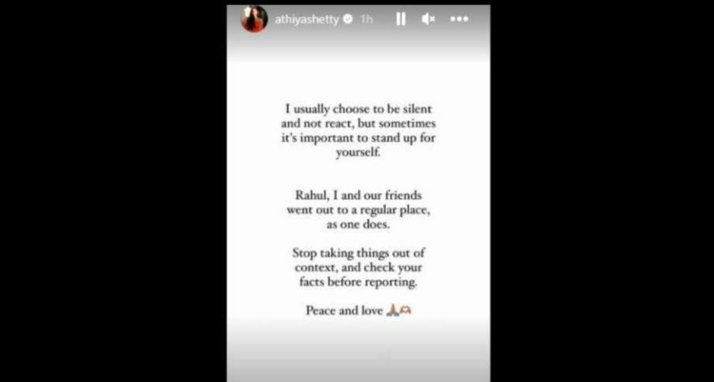 दरअसल, शनिवार को बॉलीवुड अभिनेत्री अथिया शेट्टी ने अपने आधिकारिक इंस्टाग्राम अकाउंट पर एक स्टोरी साझा की जिसमें उन्होंने ट्रोलर्स को जवाब देते हुए लिखा,