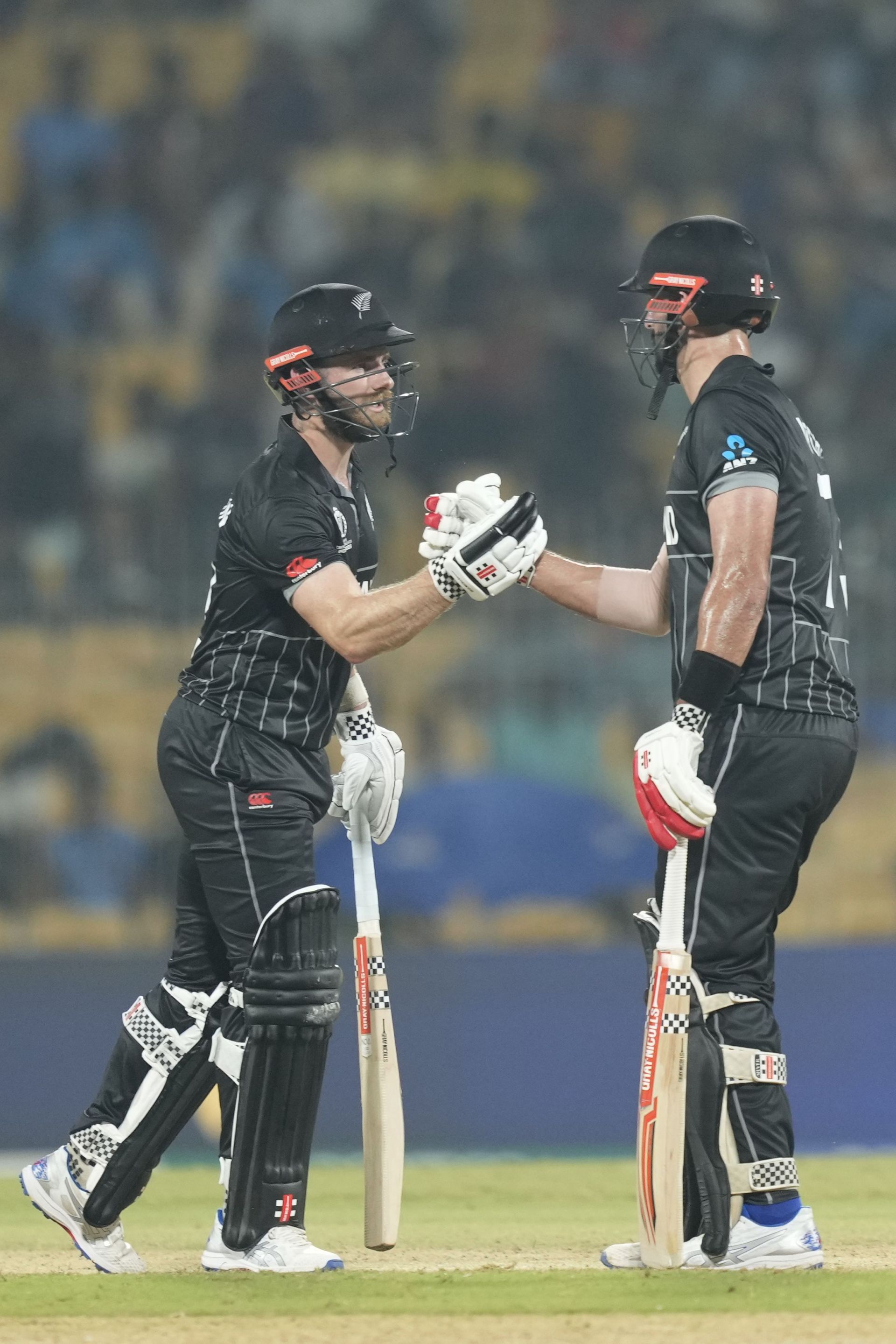 लक्ष्य के जवाब में न्यूजीलैंड को पहला झटका तीसरे ही ओवर में 12 के स्कोर पर लगा और रचिन रविंद्र सिर्फ 9 रन बनाकर आउट हुए। इसके बाद अंतरराष्ट्रीय क्रिकेट में वापसी करने वाले केन विलियमसन ने डेवन कॉनवे (59 गेंद 45) के साथ दूसरे विकेट के लिए 80 रनों की साझेदारी निभाई। 21वें ओवर में 92 के स्कोर पर कॉनवे के आउट होने के बाद विलियमसन ने डैरिल मिचेल के साथ तीसरे विकेट के लिए 108 रनों की साझेदारी निभाई।