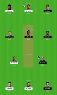 Fantasy Suggestion #1: केएल राहुल, महेंद्र सिंह धोनी, निकोलस पूरन, फाफ़ डू प्लेसी, अम्बाती रायडू, केदार जाधव, सैम करन, ग्लेन मैक्सवेल, मोहम्मद शमी, दीपक चाहर, रवि बिश्नोई।