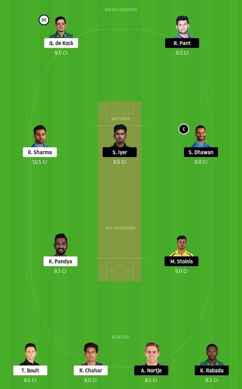 ऋषभ पन्त, क्विंटन डी कॉक, रोहित शर्मा, श्रेयस अय्यर, शिखर धवन, मार्कस स्टोइनिस, क्रुणाल पांड्या, कगिसो रबाडा, ट्रेंट बोल्ट, एनरिक नॉर्टजे, राहुल चाहर।