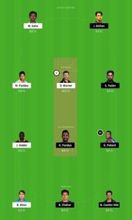 Fantasy Suggestion #1:इशान किशन, रिद्धिमान साहा, डेविड वॉर्नर, सूर्यकुमार यादव, मनीष पांडे, किरोन पोलार्ड, जेसन होल्डर, क्रुणाल पांड्या, राहुल चाहर, नाथन कुल्टर नाइल, राशिद खान।