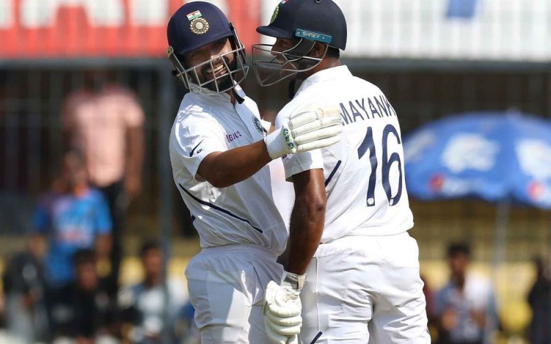 मयंक अग्रवाल ने अपना दूसरा दोहरा शतक लगाया और 28 चौके एवं 8 छक्कों की मदद से 243 रनों की शानदार पारी खेली। मयंक अग्रवाल के आउट होने के बाद जडेजा ने ऋद्धिमान साहा के साथ मिलकर टीम की बढ़त को 300 के पार पहुंचाया, लेकिन साहा 12 रन बनाकर 454 के स्कोर पर आउट हो गए। इसके बाद जडेजा ने अपना 14वां अर्धशतक पूरा किया और स्टंप्स के समय 60 रन बनाकर नाबाद थे। उनके साथ उमेश यादव 10 गेंदों में 25 रनों की धुआंधार पारी खेलकर नाबाद रहे।