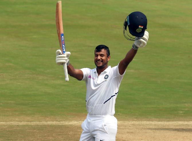 # मयंक अग्रवाल का पहला शतक और भारत की तरफ से शतक लगाने वाले 86वें एवं अपने पहले ही शतक को दोहरे शतक में तब्दील करने वाले सिर्फ चौथे भारतीय बल्लेबाज।