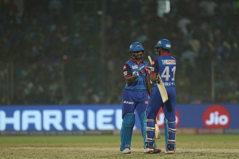 जब पृथ्वी शॉ और शिखर धवन बल्लेबाजी करने क्रीज उतरे तो दोनों खिलाड़ी अच्छे लय में दिख रहे थे। लेकिन चौथे ओवर में जब पृथ्वी शॉ रन आउट हो गए तो टीम को संभालना बेहद जरूरी था क्योंकि फिरोजशाह कोटला की पिच बल्लेबाजों के लिए मुश्किलें पैदा कर सकती थी। जब पृथ्वी शॉ आउट हुए तो उस समय टीम का कुल स्कोर 24 रन था लेकिन शिखर धवन और श्रेयस अय्यर ने मिलकर 92 रनों की साझेदारी की जिसमें शिखर धवन ने शानदार अर्धशतक भी पूरा किया।