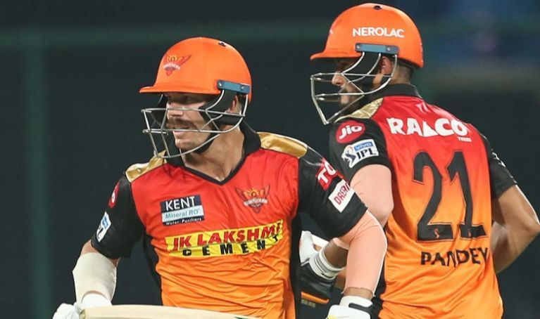 सनराइजर्स हैदराबाद की शुरुआत कुछ ख़ास नहीं रही और जॉनी बेयरस्टो सिर्फ 7 रन बनाकर तीसरे ही ओवर में 22 के स्कोर पर आउट हो गए। हालाँकि इसके बाद टीम में लौटे मनीष पांडे ने डेविड वॉर्नर के साथ दूसरे विकेट के लिए 106 रनों की बेहतरीन साझेदारी निभाई। पावरप्ले के 6 ओवर के बाद स्कोर 39/1 था और दोनों ने 14वें ओवर में टीम को 100 के पार पहुंचाया। मनीष पांडे ने 35 गेंदों में अपना अर्धशतक पूरा किया, वहीं डेविड वॉर्नर ने 50 गेंदों में धीमा अर्धशतक लगाया।