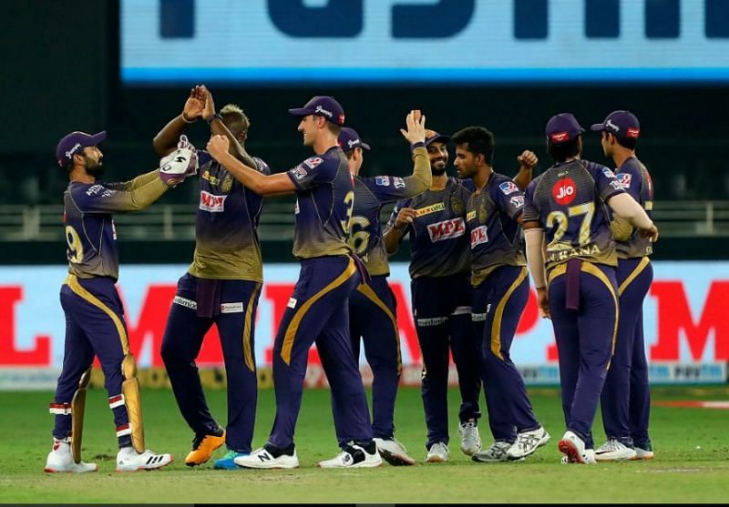 शुभमन गिल, नीतिश राणा, राहुल त्रिपाठी, दिनेश कार्तिक (विकेटकीपर), इयोन मोर्गन (कप्तान), आंद्रे रसेल, लोकी फर्ग्यूसन, शिवम मावी, सुनील नारेन, वरुण चक्रवर्ती और प्रसिद्ध कृष्णा।