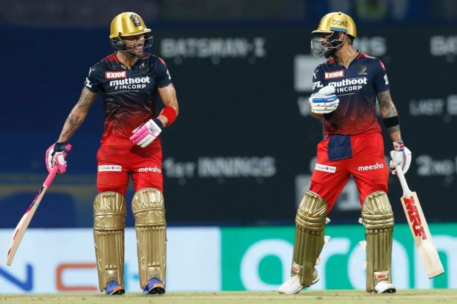 फाफ डू प्लेसी ने धीमी शुरुआत के बाद रफ़्तार पकड़ी और 41 गेंदों में अपना अर्धशतक पूरा किया। 16वें ओवर में उन्होंने कोहली के साथ मिलकर टीम को 150 के पार पहुंचाया और दूसरे विकेट के लिए 100 रनों की साझेदारी भी पूरी की। फाफ डू प्लेसी ने 57 गेंदों में 88 रनों की धुआंधार पारी खेली और 18वें ओवर में 168 के स्कोर पर अर्शदीप सिंह ने उन्हें आउट किया।