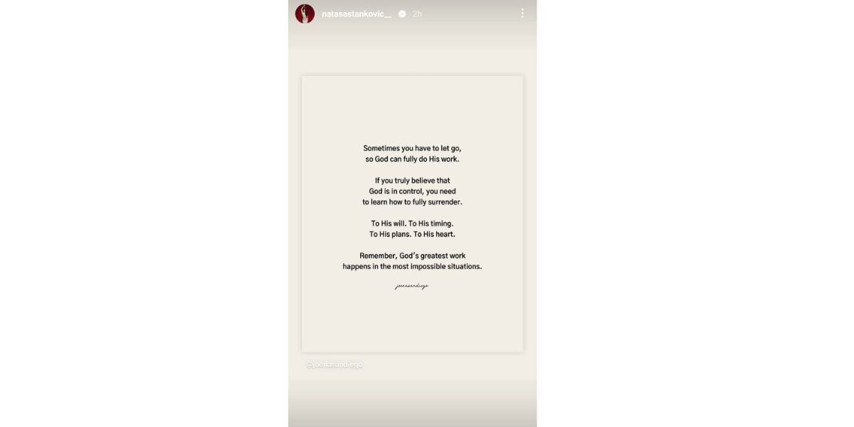 नताशा स्टेनकोविक का क्रिप्टिक पोस्ट