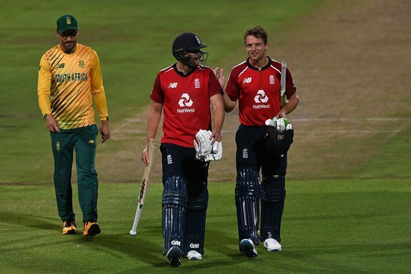 लक्ष्य का पीछा करने उतरी इंग्लैंड की टीम को कभी दिक्कत ही नहीं हुई। हालांकि जेसन रॉय (16 रन, 14 गेंद) का विकेट मेहमान टीम ने जल्द गंवा दिया लेकिन इसके बाद डेविड मलान और जोस बटलर ने 167 रनों की मैराथन साझेदारी कर 18वें ओवर में ही टीम को जीत दिला दी। जोस बटलर ने 46 गेंद पर 3 चौके और 5 छक्के की मदद से 67 रनों की पारी खेली। वहीं जेसन रॉय ने 47 गेंद पर 11 चौके और 5 छक्के की मदद से नाबाद 99 रन बनाए। हालांकि वो मात्र एक रन से अपने शतक से चूक गए।