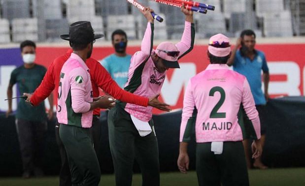 कल के मैच में नाटकीय रूप से मोहम्मडन के कप्तान शाकिब ने स्टंप्स को लात मारी थी। अम्पायर इमरान परवेज ने मुशफिकुर रहीम के खिलाफ एलबीडब्ल्यू अपील को ठुकरा दिया था तब शाकिब ने गुस्सा दिखाया था। एक ओवर बाद में उन्होंने तीनों स्टंपों को उखाड़ दिया और जमीन पट पटक दिया। अम्पायर ने उस समय बारिश के कारण कवर्स को मैदान पर बुलाया था, तभी शाकिब ने अचानक आकर स्टंप्स को उखाड़ दिया।