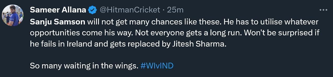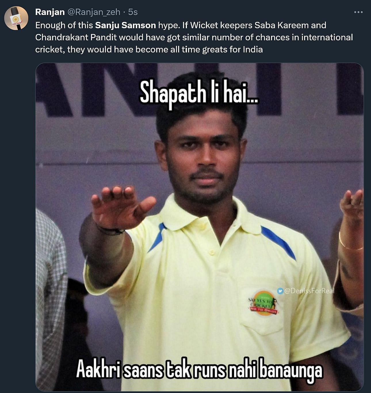 संजू सैमसन को लेकर ट्विटर पर प्रतिक्रियाएं