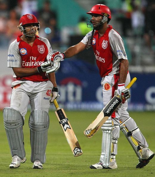 लक्ष्य का पीछा करने उतरी किंग्स XI पंजाब की टीम 53-2 का स्कोर था, जब युवराज सिंह बल्लेबाजी करने आए। युवी ने नाबाद रहते हुए 36 गेंदों में 2 छक्के और 5 चौके की मदद से 58 रन बनाए। उन्हें महेला जर्यवर्धने का अच्छा साथ मिला। हालांकि अंत में वो 18 ओवरों में 174-3 का स्कोर बना पाए और इस मैच को हार गए।