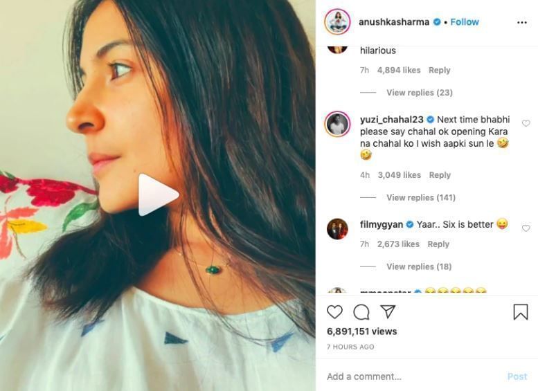हाल ही में भारतीय क्रिकेट टीम के कप्तान विराट कोहली की पत्नी अनुष्का शर्मा का एक वीडियो आया था, जिसमें वो कोहली से चौका मारने को कह रही थीं। इस पोस्ट पर स्पिन गेंदबाज युजवेंद्र चहल ने कमेंट किया है और अनुष्का शर्मा से खास मांग की है। चहल ने अनुष्का शर्मा के इस पोस्ट पर कमेंट करके कहा कि वो विराट कोहली से कहें कि उन्हें ओपनिंग बल्लेबाजी के लिए भेजा जाए।
