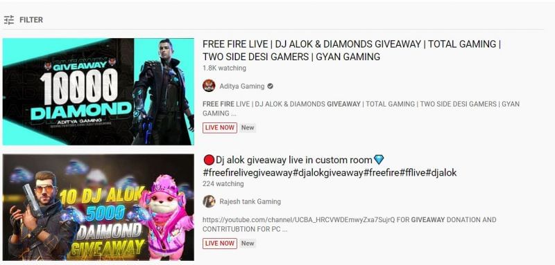 इसके साथ ही गिवअवे में हिस्सा लेकर भी आप डायमंड्स का सकते हैं। यूट्यूबर्स, स्ट्रीमर्स और इंस्टाग्राम पेज समय-समय पर डायमंड्स के गिवअवे करते हैं। अगर आप उसमें हिस्सा लेते हैं और आपकी किस्मत अच्छी रहती हैं तो आपको मुफ्त में डायमंड्स मिल सकते हैं।