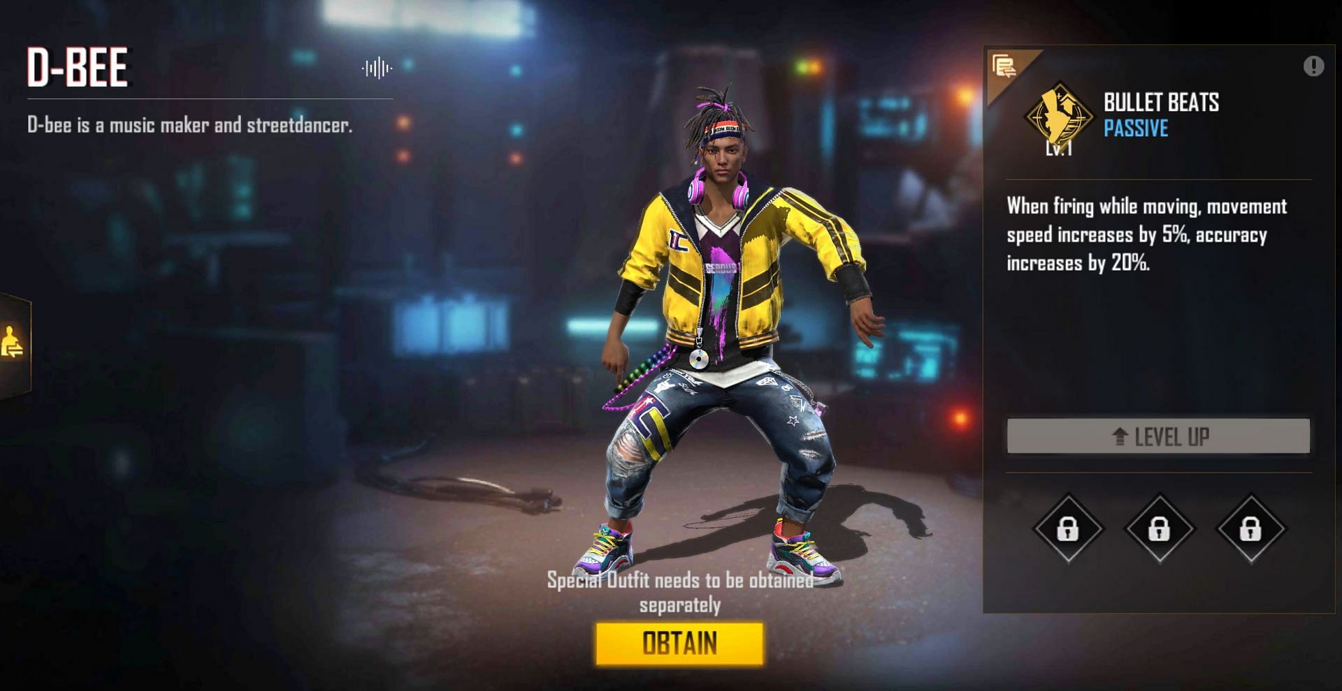 D-bee की मदद से फाइट्स के दौरान आपको फायदा होगा। आप फायर करते हुए अपनी मूवमेंट स्पीड को इस कैरेक्टर की मदद से बढ़ा सकते हैं। इस कैरेक्टर से आपको जबरदस्त तरीके से फायदा मिलेगा।
