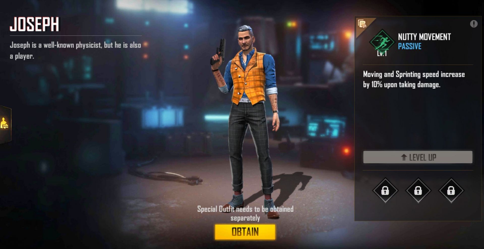 Joseph कैरेक्टर से आपको मूवमेंट और स्प्रिन्टिंग के मामले में फायदा हो सकता है। अगर आपको डैमेज पड़ेगा तो यह कैरेक्टर एक्टिवेट हो जाएगा। यह भी Kelly की तरह ही उपयोगी साबित हो सकता है।