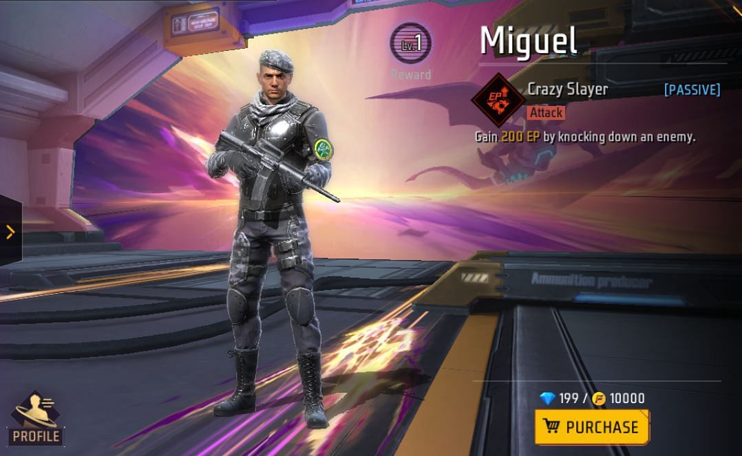 Free Fire MAX में Miguel के पास Crazy Slayer नाम की ताकत है। इसकी मदद से आप विरोधी को नॉक करने पर 200 EP हासिल कर सकते हैं। यह कैरेक्टर कई आक्रमक खिलाड़ी उपयोग करते हैं।