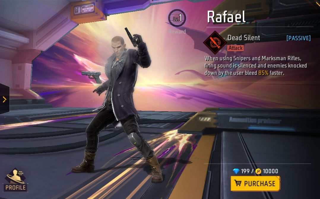 Rafael के पास Dead Silent नाम की ताकत है। इसकी मदद से स्नाइपर्स और मार्कमैन गन में साइलेंसिंग इफेक्ट आ जाता है। आप जिन विरोधियों को नॉक करते हैं, वो 85% तेजी से ब्लीड करते हैं।
