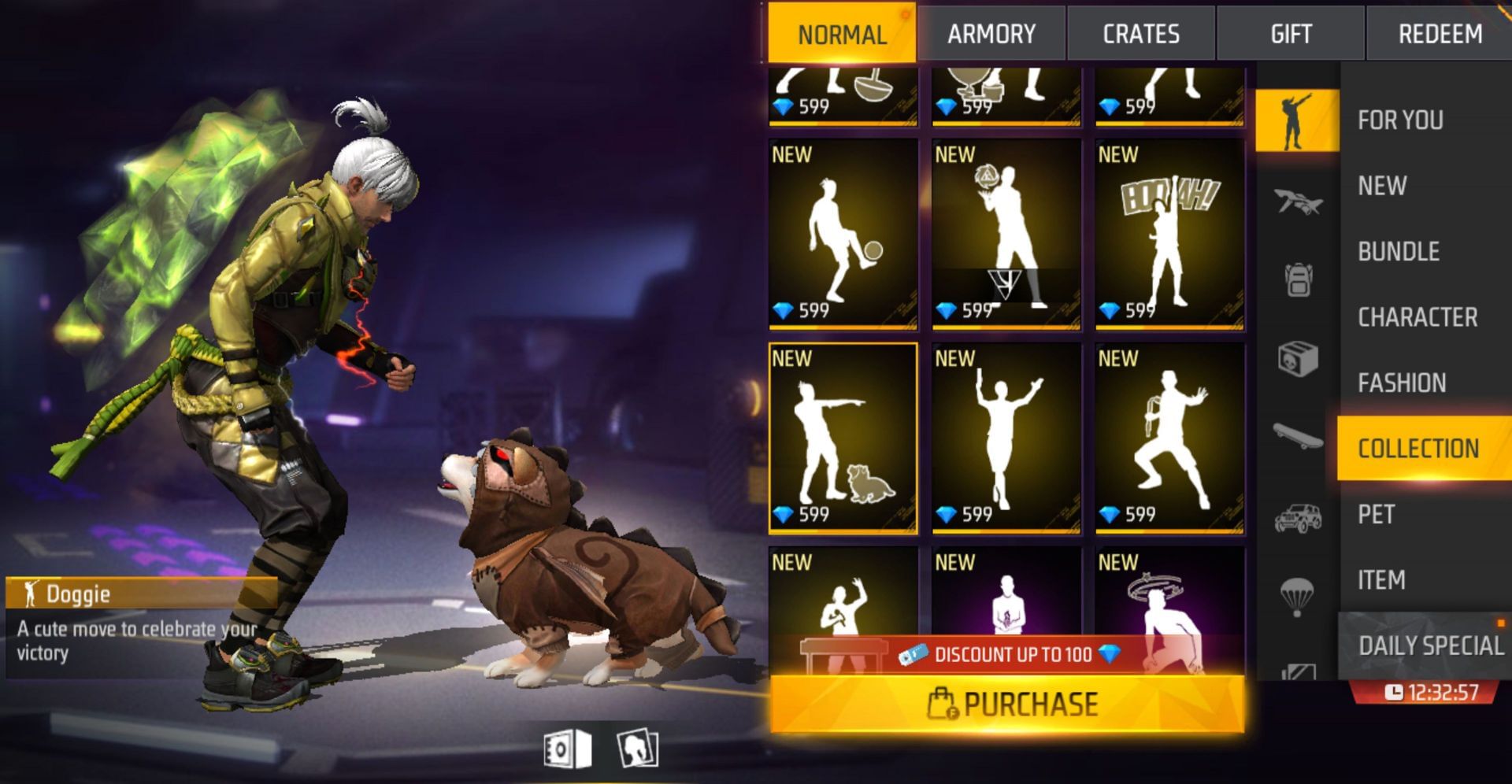 Free Fire MAX में Doggie इमोट कई लोग पसंद करते हैं और इसे Shiba पेट के साथ उपयोग करके बहुत फायदा उठाया जा सकता है। इस इमोट को अप्लाई करने पर आप डॉग के साथ जबरदस्त मूव्स परफॉर्म कर सकते हैं।