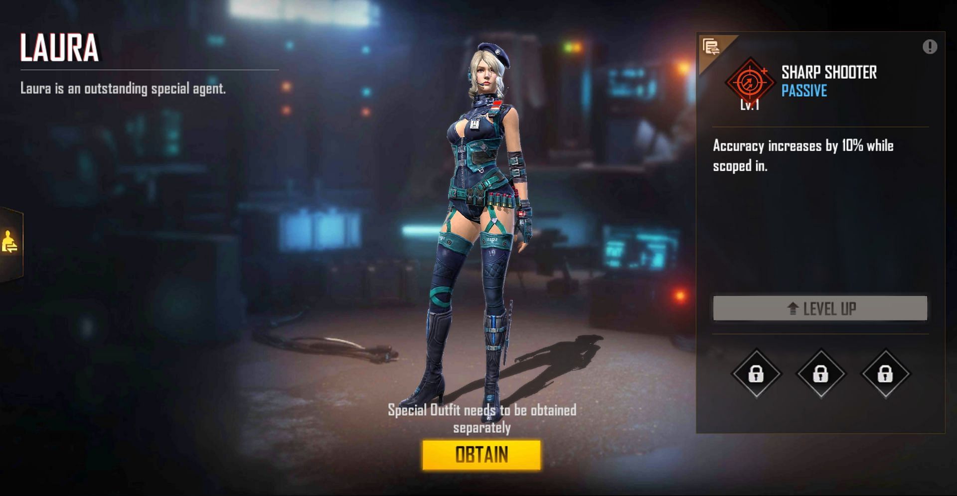 Laura कैरेक्टर की मदद से जब भी आप स्कोप खोलेंगे तो एक्यूरेसी बढ़ जाएगी। लेवल बढ़ाने से आपको काफी ज्यादा फायदा मिलेगा।