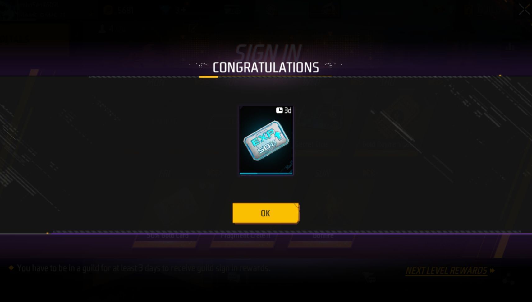 Free Fire MAX के स्टोर सेक्शन में 100% EXP कार्ड उपलब्ध है। इन सभी चीज़ों के बावजूद आपको मुफ्त EXP कार्ड्स पाने की कोशिश करनी चाहिए। यहां आपको इन-गेम इवेंट्स और गिल्ड लॉगिन में मिलते हैं। आप इन्हें उपयोग करके तेजी से लेवल बढ़ा सकते हैं।