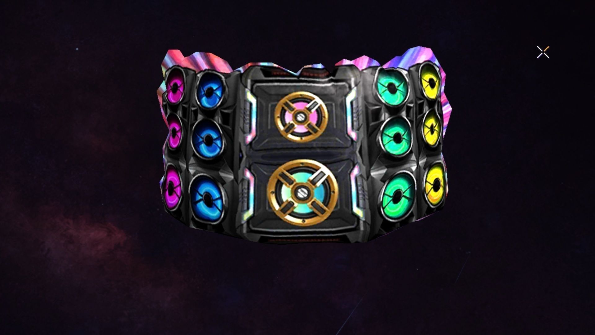 Free Fire Max में गेम के अंदर कलरफुल स्किन हर कोई पसंद करता है। ये स्किन काफी अनोखी तरह से डिजाइन की जाती है। ये स्किन गेमर्स 399 डायमंड्स में खरीद सकते हैं। ये स्पीकर के आधार पर बनाई गई है।