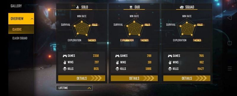 A_S Gaming ने Free Fire में सबसे ज्यादा 7,615 स्क्वाड मैच खेलकर 1,162 में जित हासिल करी है। साथ ही उनका K/D रेश्यो 3.01 का है और उन्होंने 19,427 किल्स कर चुके हैं। उन्होंने डुओ मोड में 2,181 मैच खेले हैं साथ ही उन्होंने 301 में जित दर्ज करी है। उन्होंने अभी तक 5,886 किल्स कर चुके हैं और उनका K/D रेश्यो 3.13 का है। इस यूट्यूबर ने सोलो मोड में 2,358 मैच खेलकर 297 में जित हासिल करी है। अभी तक उन्होंने 8,135 किल्स कर चुके हैं और उनका K/D 3.95 का है।