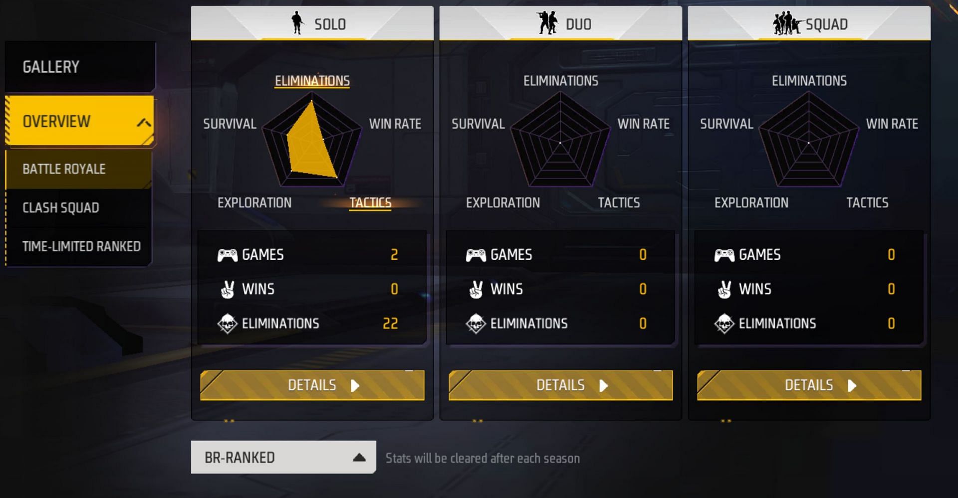 Amitbhai ने फ्री फायर मैक्स में क्लैश स्क्वाड रैंक मोड के अंदर स्क्वाड और डुओ स्टैट्स शून्य है। इसके आलावा सोलो में उन्होंने 2 मैच खेलकर 22 में जीत हासिल की है। उनका K/D रेश्यो 11.00 है।