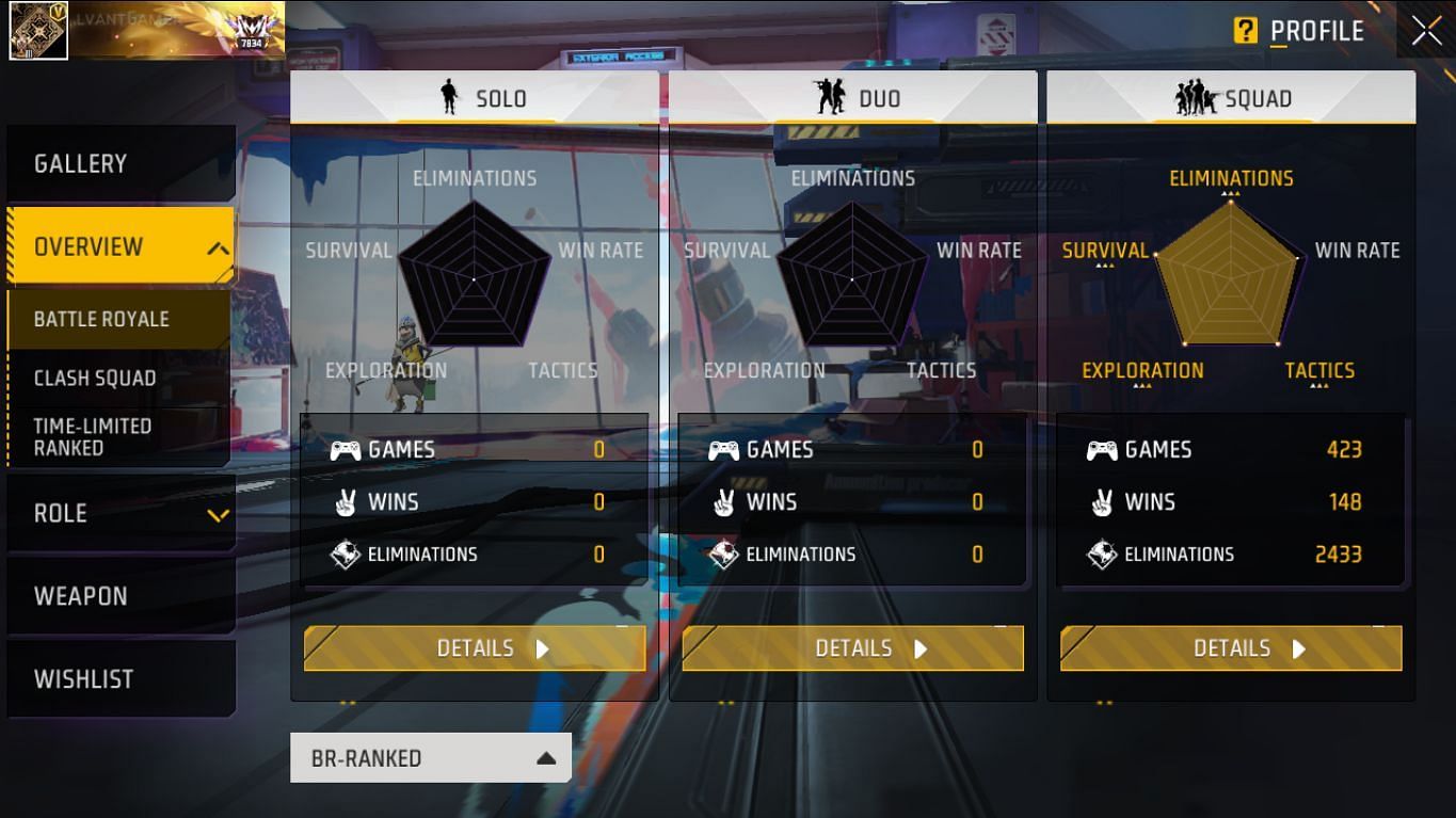 Balvant Gaming ने स्क्वाड मोड में 12059 मैच खेले हैं और उन्हें 2933 में जीत मिली है। वो 48231 एलिमिनेशन कर चुके हैं और उनका K/D रेश्यो 5.29 का है। उन्होंने 816 डुओ मैच खेले हैं और इसमें से उन्हें 72 में जीत मिली है। वो 1834 किल करने में सफल हो गए हैं और उनका K/D रेश्यो 2.47 का है। Balvant Gaming ने 639 सोलो मैचों में से 76 में जीत प्राप्त की है। वो 1506 एलिमिनेशन कर चुके हैं और उनका K/D रेश्यो 2.67 का है।