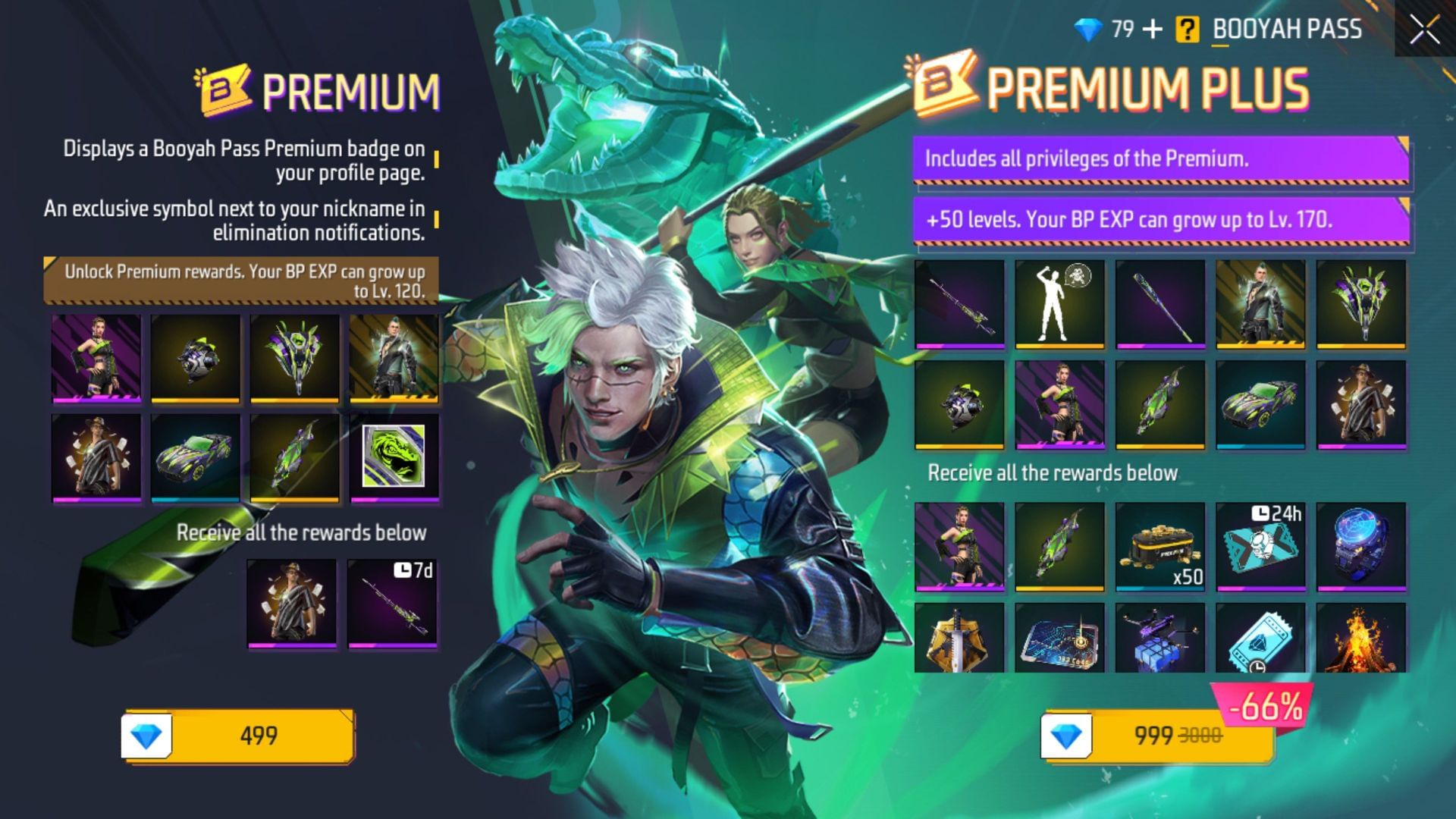 Free Fire Max में गेम के अंदर Booyah Pass सीजन 2 को रिलीज कर दिया गया है। अगर गेमर्स डायमंड्स के आधार पर बूयाह पास को परचेस करते हैं। वो रिवार्ड्स को क्लैम कर सकते हैं। प्रीमियम की असली कीमत 499 डायमंड्स है और 120 लेवल तक सभी रिवार्ड्स अनलॉक हो जाएंगे। प्रीमियम प्लस की कीमत 999 डायमंड्स है, जिसमें 170 लेवल तक सभी रिवार्ड्स अनलॉक होंगे।