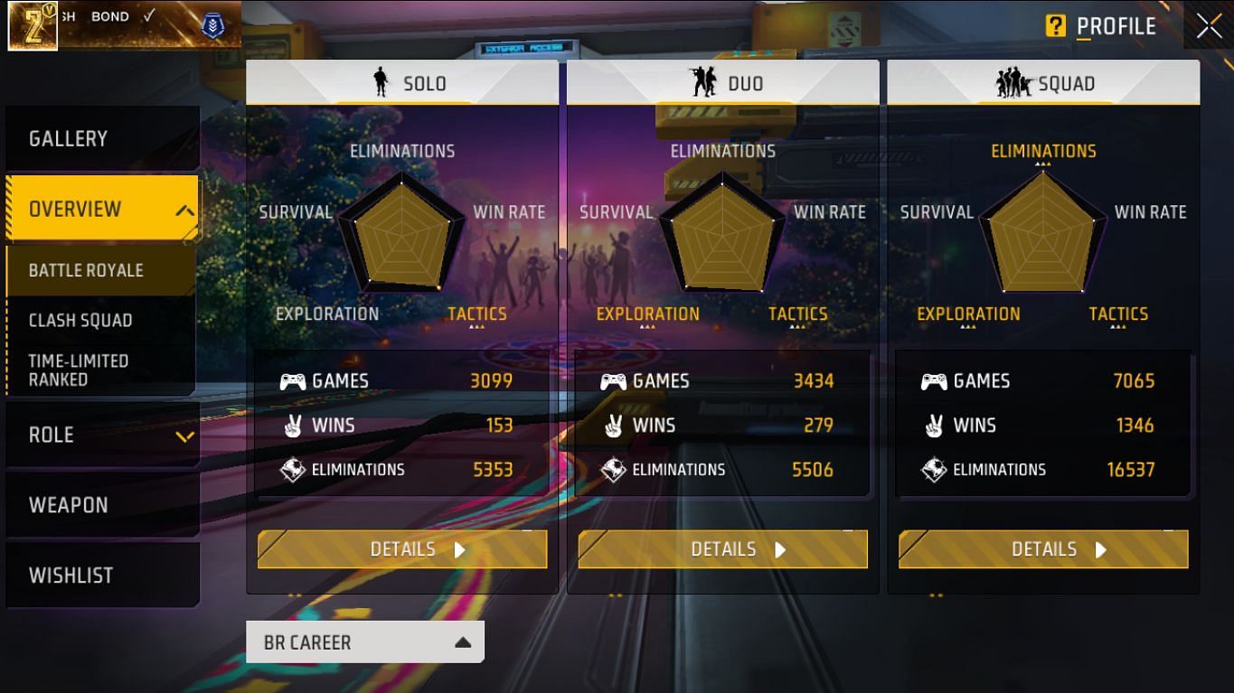 Kill2Head ने स्क्वाड मोड 7065 मैच खेले हैं और उन्हें 1346 में जीत मिली है। वो 16537 एलिमिनेशन कर चुके हैं और उनका K/D रेश्यो 2.89 का है। उन्होंने 3434 डुओ मैचों में जगह बनाते हुए 279 जीते हैं। इसमें से वो 5506 किल कर चुके हैं और उनका K/D रेश्यो 1.75 का है। उन्होंने 3099 सोलो मैचों में हिस्सा लिया और 153 जीते हैं। वो 5353 किल कर चुके हैं और उनका K/D रेश्यो 1.82 का है।