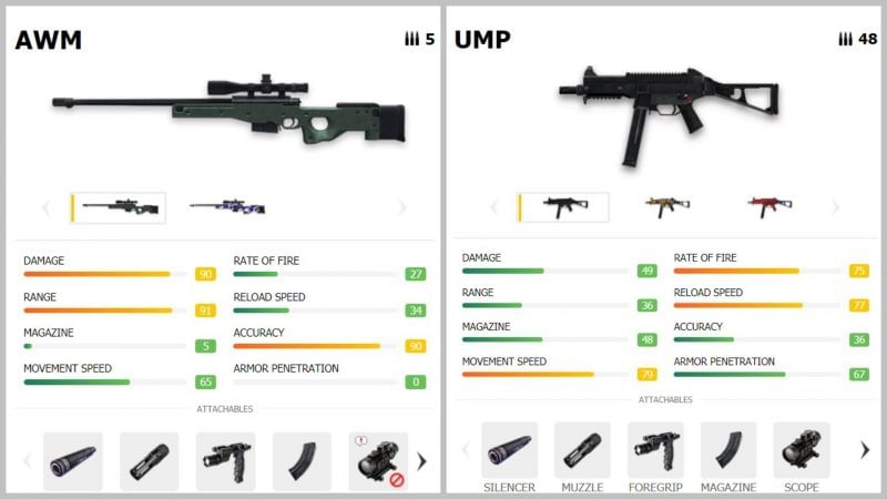 स्नाइपर राइफल्स को लॉन्ग रेंज के लिए उपयोग किया जाता है। गेम में सिमित स्नाइपर राइफल्स मौजूद है और आप किसी भी गन को साथ रख सकते हैं। इसके साथ UMP का उपयोग करना एक शानदार विकल्प रहेगा। इस गन का फायर रेट और रेंज काफी अच्छी है। आपको गेम के इस कॉम्बिनेशन से काफी फायदा होगा।
