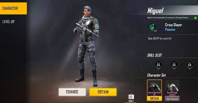 Free Fire में Miguel पैसिव एबिलिटी वाला कैरेक्टर है, जिसमें क्रेजी स्लेयर नाम की ताकत मौजूद है। ये मैदान पर कील करने पर खिलाड़ी को 30 EP बढ़ाता है।