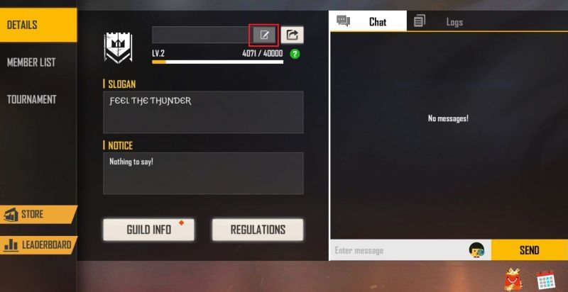 गिल्ड का लीडर असल में ग्रुप का नाम बनाते समय रख सकता है। अगर आपको बदलने की इच्छा हो तो 500 डायमंड्स की मदद से आप नाम बदल सकते हैं। इन स्टेप्स का पालन करके आप गिल्ड का नाम बदल सकते हैं।