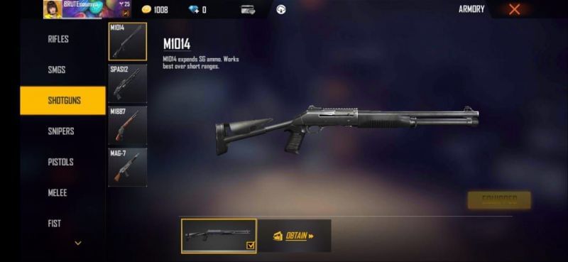 AK को अपने घातक डैमेज के लिए जाना जाता है। आप इसे मिड रेंज में उपयोग कर सकते हैं लेकिन रेकोईल संभालने में खिलाड़ियों को जरूर दिक्कतों का सामना करना पड़ सकता है। M1014 के साथ खिलाड़ी अपनी क्लोज रेंज फाइट्स को भी बेहतर बना सकते हैं।