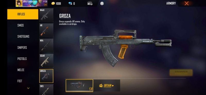 Free Fire में Groza एक ताकतवर और जबरदस्त गन है। आप इसे लगभग हर रेंज में उपयोग कर सकते हैं। इसके साथ आप MP5 एक उपयोग करके क्लोज रेंज फाइट को बेहतर बना सकते हैं।
