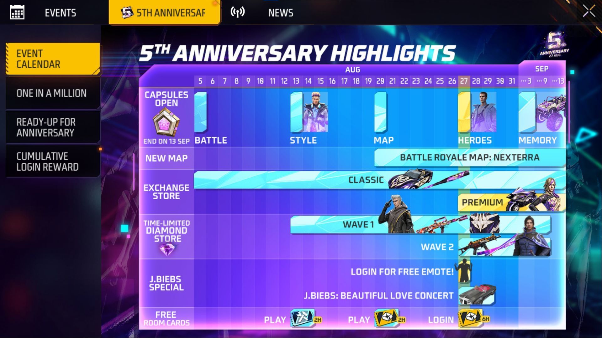 Free Fire MAX की 5वीं सालगिरह की शुरुआती डेट और अन्य जानकारी