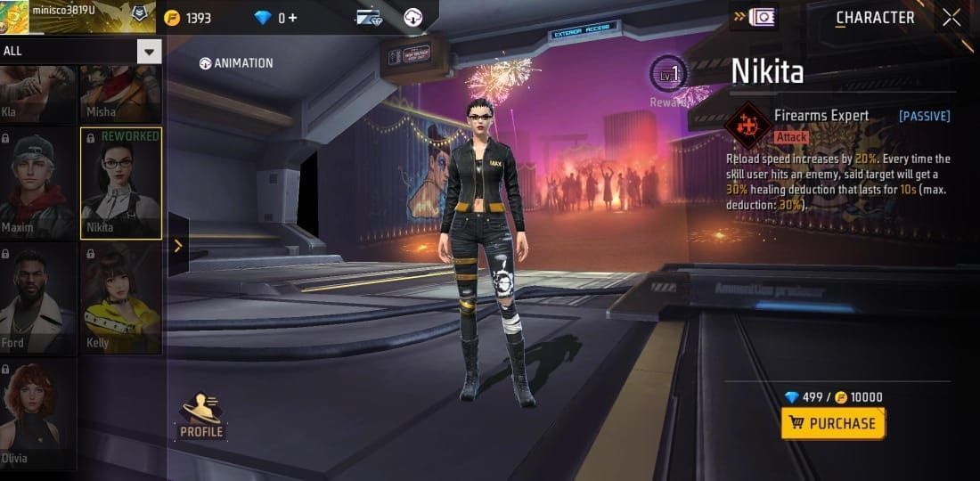 स्टेप 3: स्क्रॉल करके Nikita कैरेक्टर को चुनना होगा। "Purchase" वाले बटन पर टच करके "10000 Gold Coins" या "499 Diamonds" का पेमेंट करें और आप कैरेक्टर को खरीद सकते हैं।