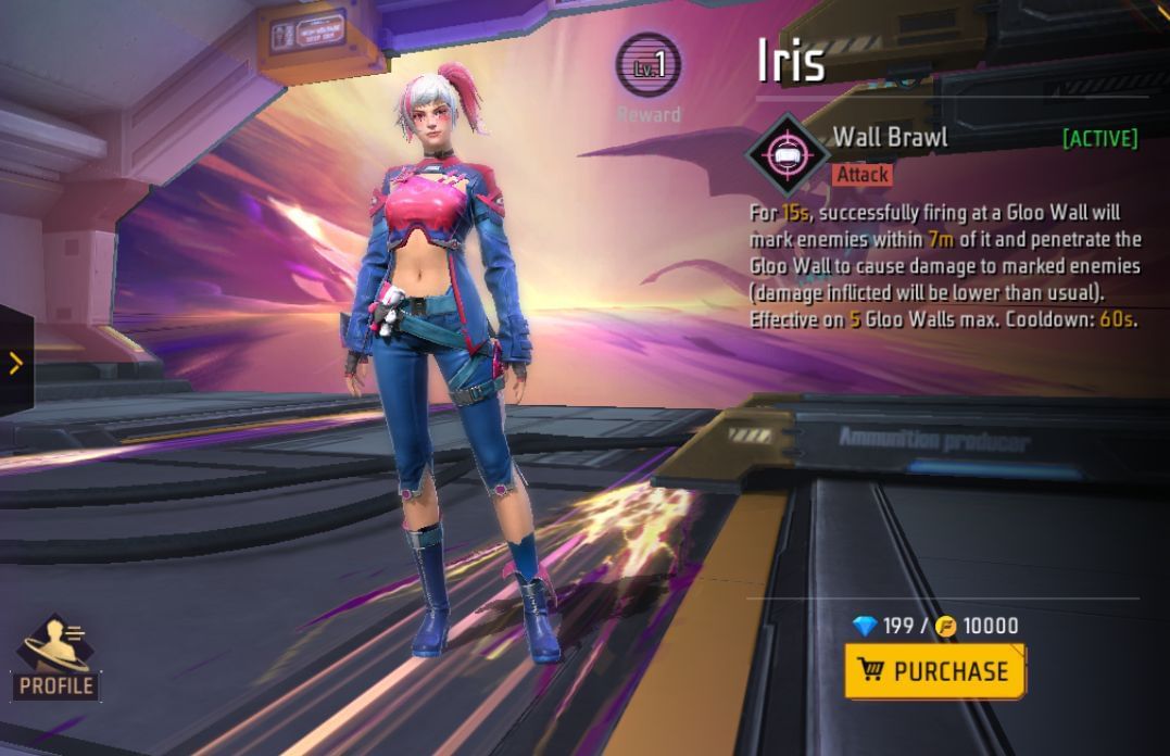 Iris कैरेक्टर का उपयोग करने पर ग्लू वॉल लगाने के बाद विरोधी जो 7 मीटर के अंदर हैं, वो मार्क हो जाएंगे। ग्लू वॉल को डैमेज पहुंचाया जाएगा, जिससे मार्क किए गए विरोधी पर डैमेज होगा। इसका इफेक्ट अधिकतम 5 ग्लू वॉल्स पर हो सकता है। इसका इफेक्ट 15 सेकेंड्स के लिए होता है। कैरेक्टर का कूलडाउन 60 सेकेंड्स के लिए होता है।