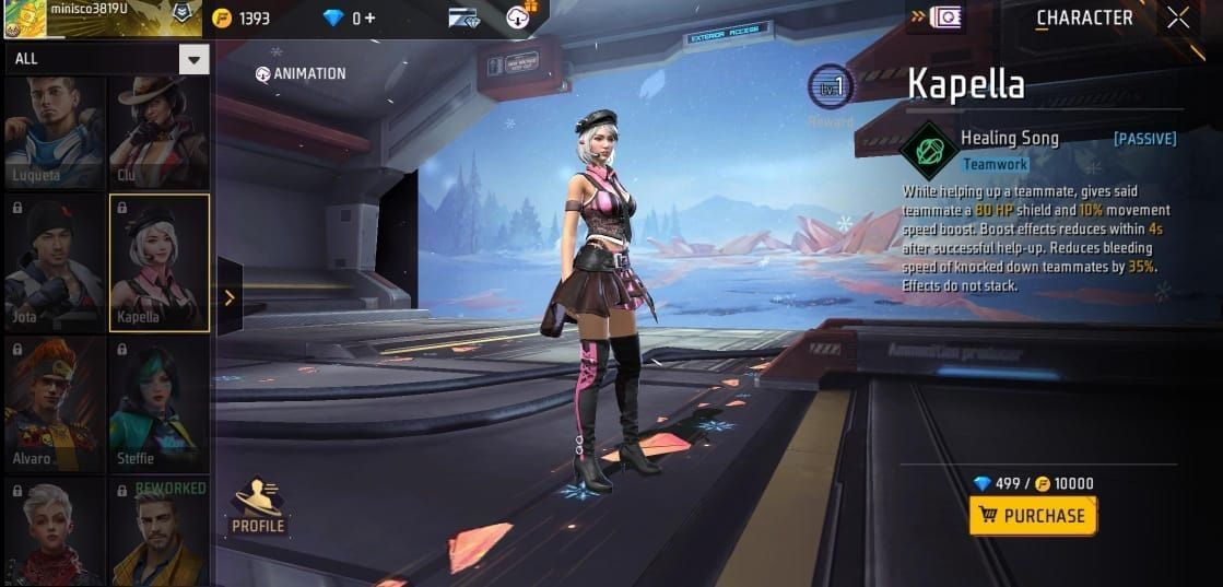 स्टेप 3: स्क्रॉल करके Kapella कैरेक्टर को चुनना होगा। "Purchase" वाले बटन पर टच करके "10000 Gold Coins" या "499 Diamonds" का पेमेंट करें और आप कैरेक्टर को खरीद सकते हैं।