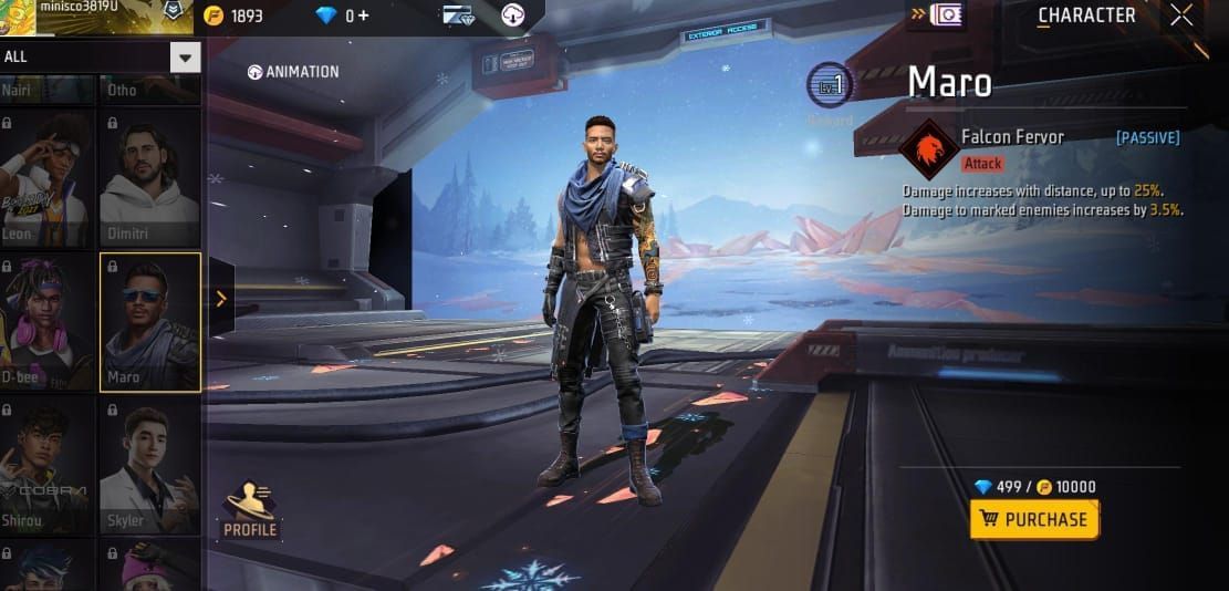 Maro कैरेक्टर के पास Falcon Ferver नाम की ताकत देखने को मिलती है। यह पैसिव ताकत वाला फीमेल कैरेक्टर है। आक्रामक गेम खेलने वाले खिलाड़ियों को Maro कैरेक्टर का इस्तेमाल करना चाहिए। इस कैरेक्टर की ताकत वनटैप हेडशॉट पर काम करती है। अगर दुरी के साथ विरोधियों को हेडशॉट मारते हैं, तो 25% डैमेज बढ़ जाता है।