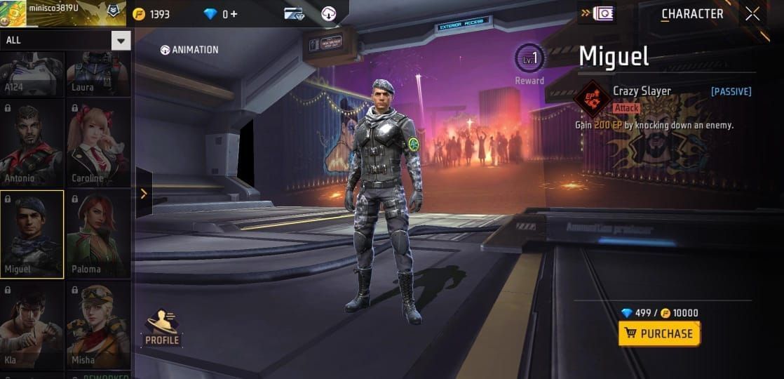 Miguel कैरेक्टर के पास Crazy Slayer नाम की ताकत देखने को मिलती है। यह पैसिव ताकत वाला फीमेल कैरेक्टर है। आक्रामक गेम खेलने वाले खिलाड़ियों को Miguel कैरेक्टर का इस्तेमाल करना चाहिए। इस कैरेक्टर की ताकत का इस्तेमाल करते हैं और विरोधियों को नॉक करते हैं, तो 200 EP मिलेगी।