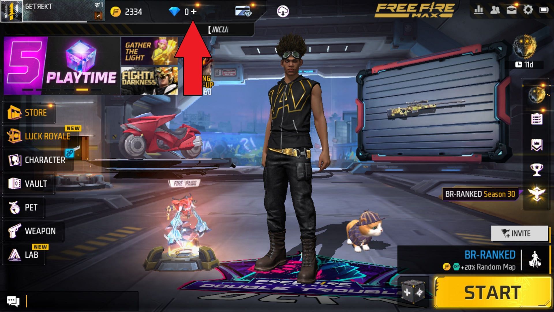 स्टेप 1: Free Fire MAX खोलें और डायमंड्स के विकल्प पर जाएं।