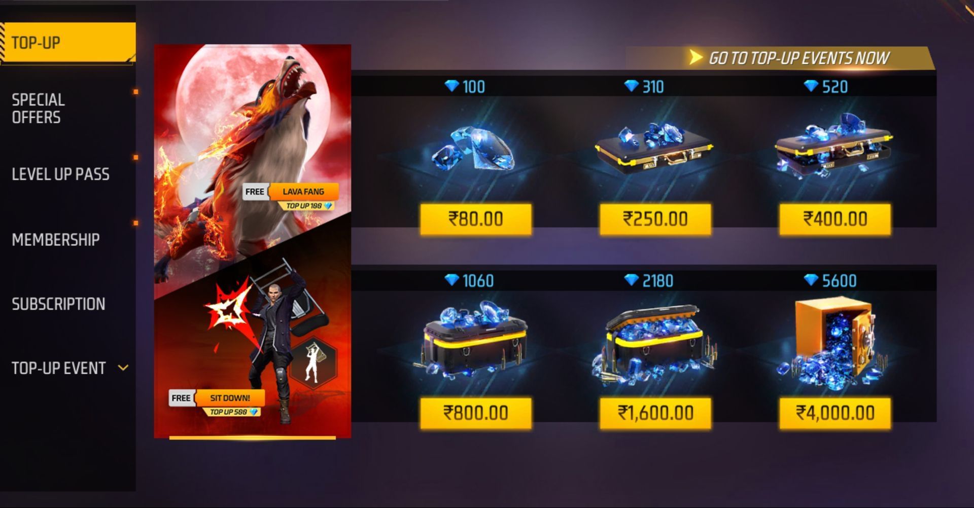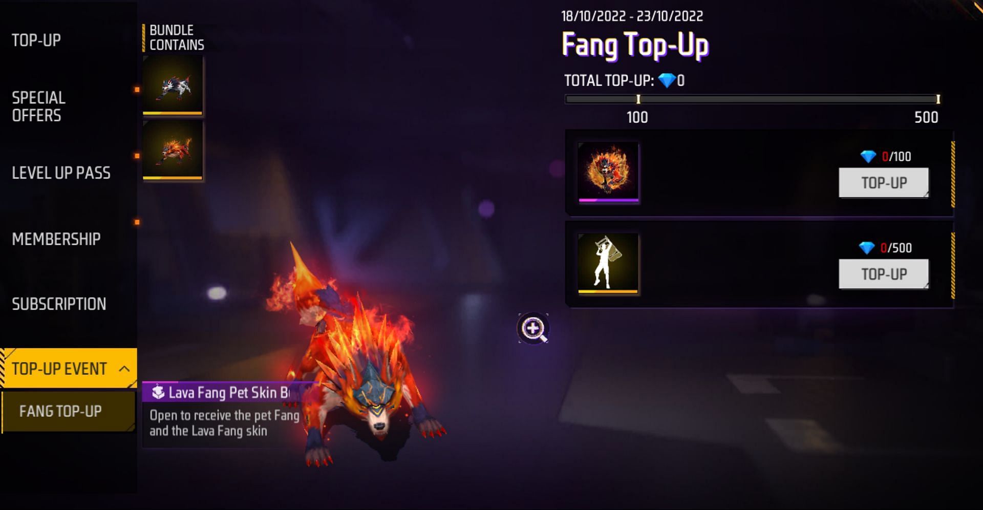 Free Fire MAX में Fang टॉपअप इवेंट के बारे में जानकारी