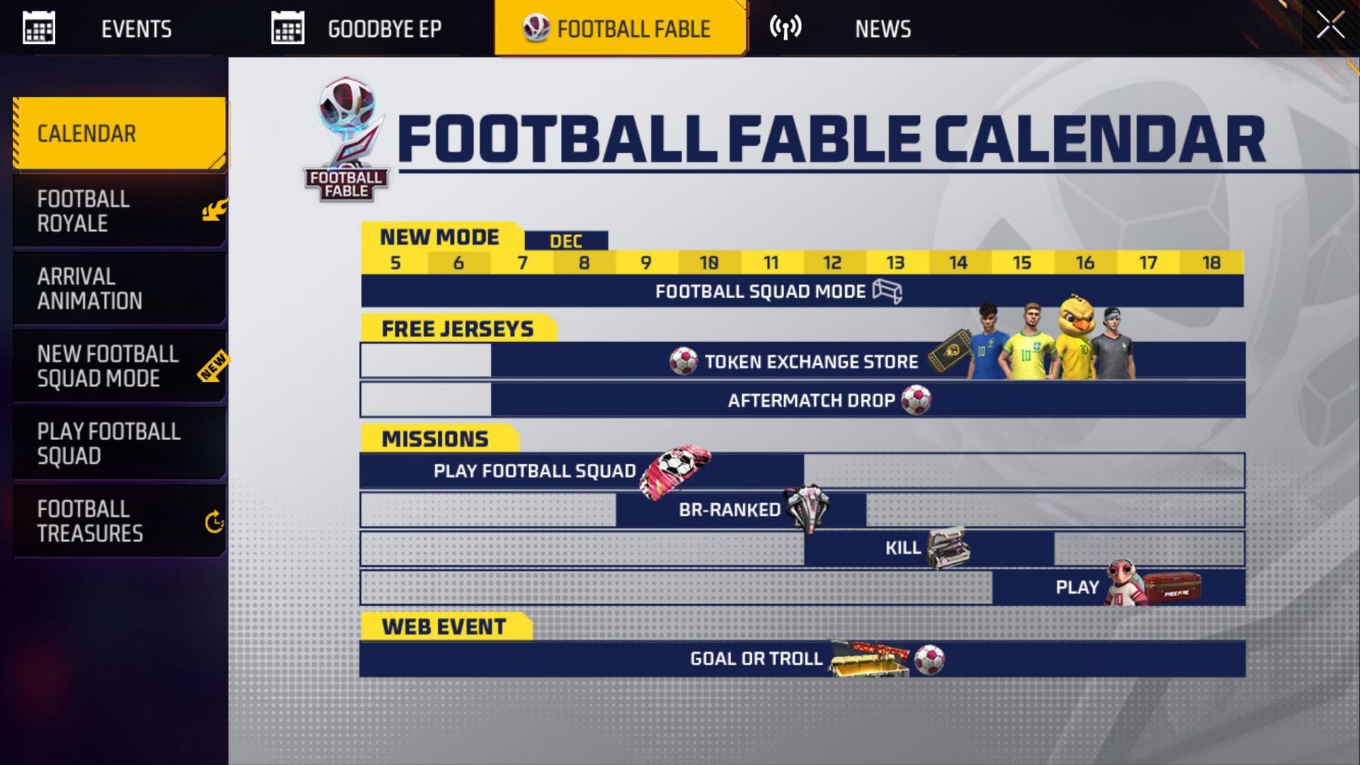Free Fire MAX के Football Fable इवेंट का कैलेंडर