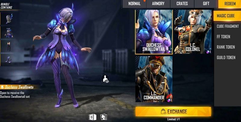 Free Fire में Duchess Swallowtail यह एक सबसे प्रसिद्व फीमेल कॉस्ट्यूम बंडल है। इस बंडल को मैजिक क्यूब से रिडीम कर सकते हैं। नीचे इस बंडल में मौजूद आइटम्स है: