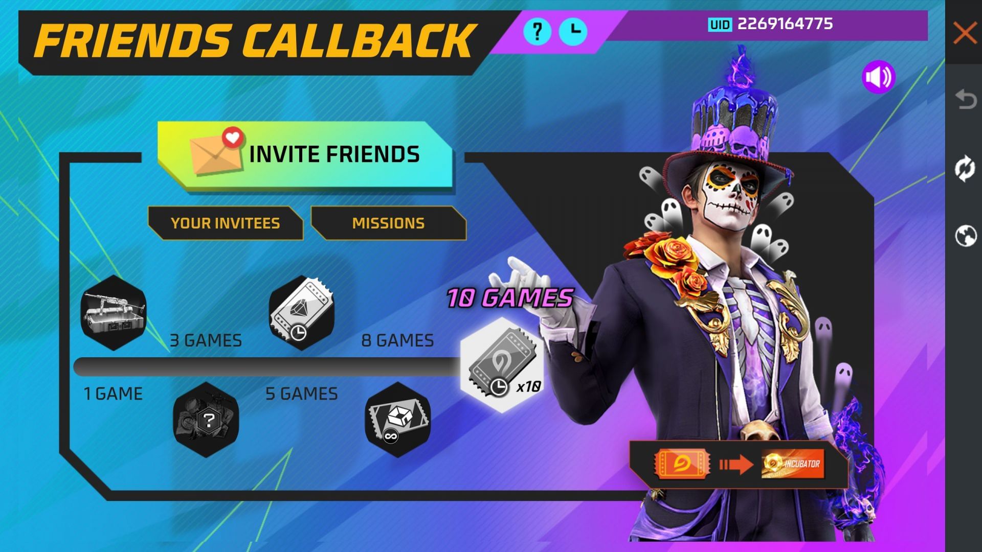 Free Fire Max में Friend Callback इवेंट की सलाह : मुफ्त में इनक्यूबेटर वाउचर्स और अन्य रिवार्ड्स कैसे प्राप्त करें?